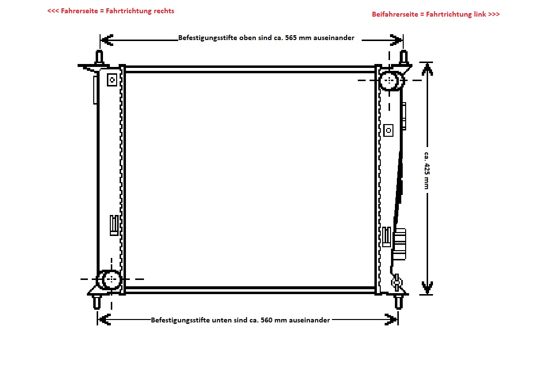 Die oberen Befestigungsvorgaben sind 565mm auseinander