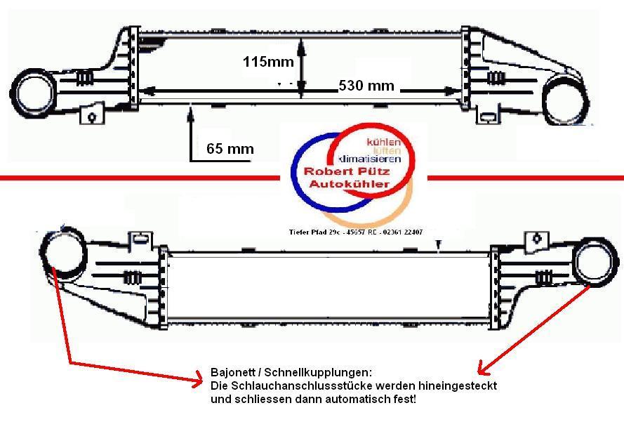 Siehe unbedingt Bild! Bei diesem LLK sind die Schlauchanschlüsse sogenannte Schnellkupplungen / Bajonettverschlüsse versehen. |