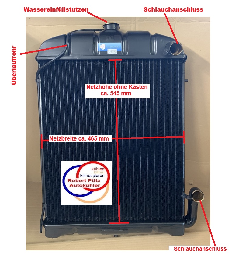 Die hier genannten Abmessungen beziehen sich nur auf das Kühlernetz ohne Anbauteile wie Kästen (oben und unten) und ohne die Seitenteile (rechts und links) am Kühler.